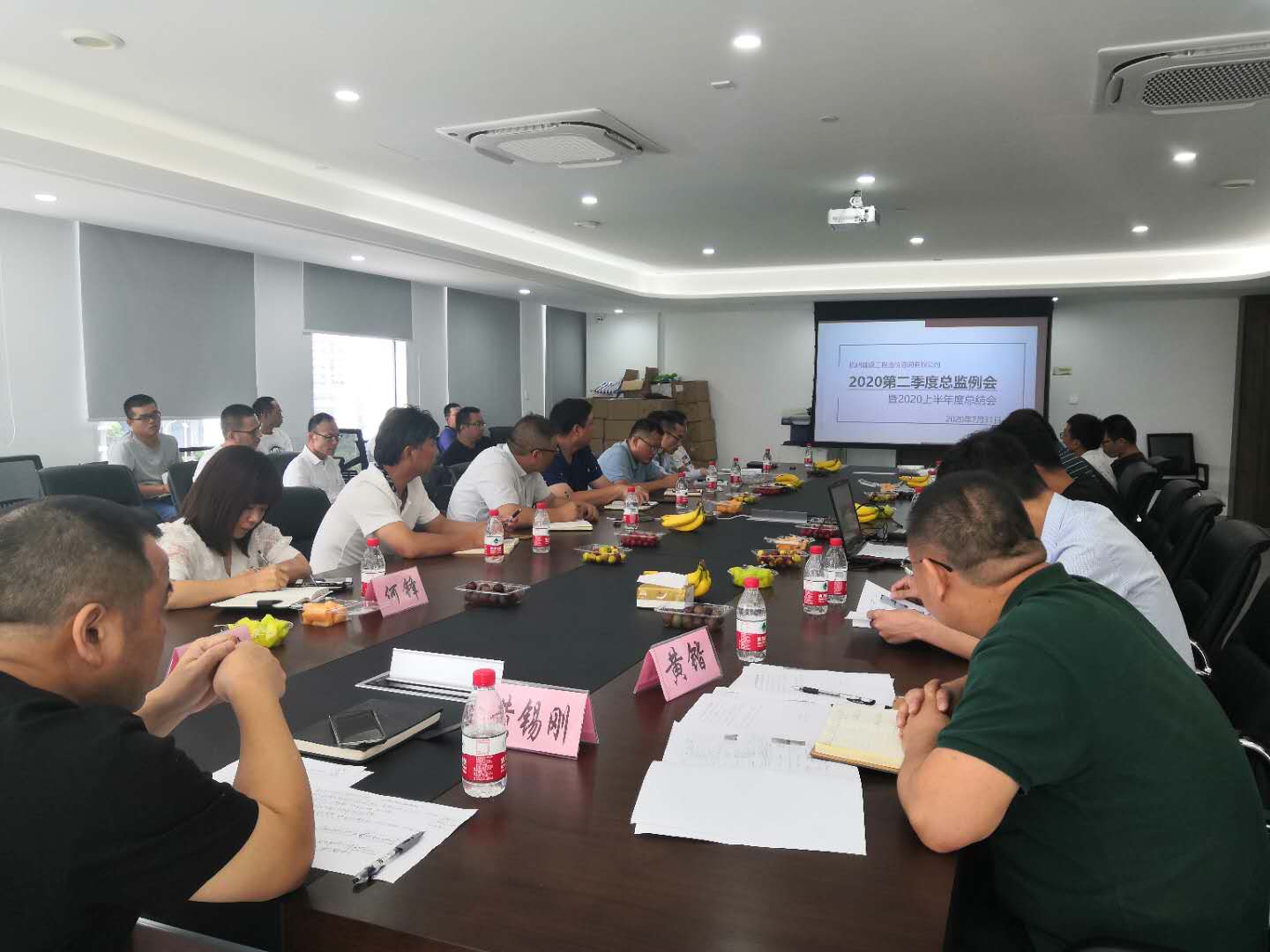 7月31日,杭建咨询召开2020年第二季度总监例会,董事长黄锡刚、运营总裁赵向炜、监理事业部副总经理黄锴、工程部、办公室监理事业部负责人、各个总监出席,会议由监理事业部副总经理黄锴主持,会议以“  精细管理,共谋发展 ”为主题对监理事业部第二季度的工作及上半年的工作进行汇总通报,并提出下阶段的主要工作内容。